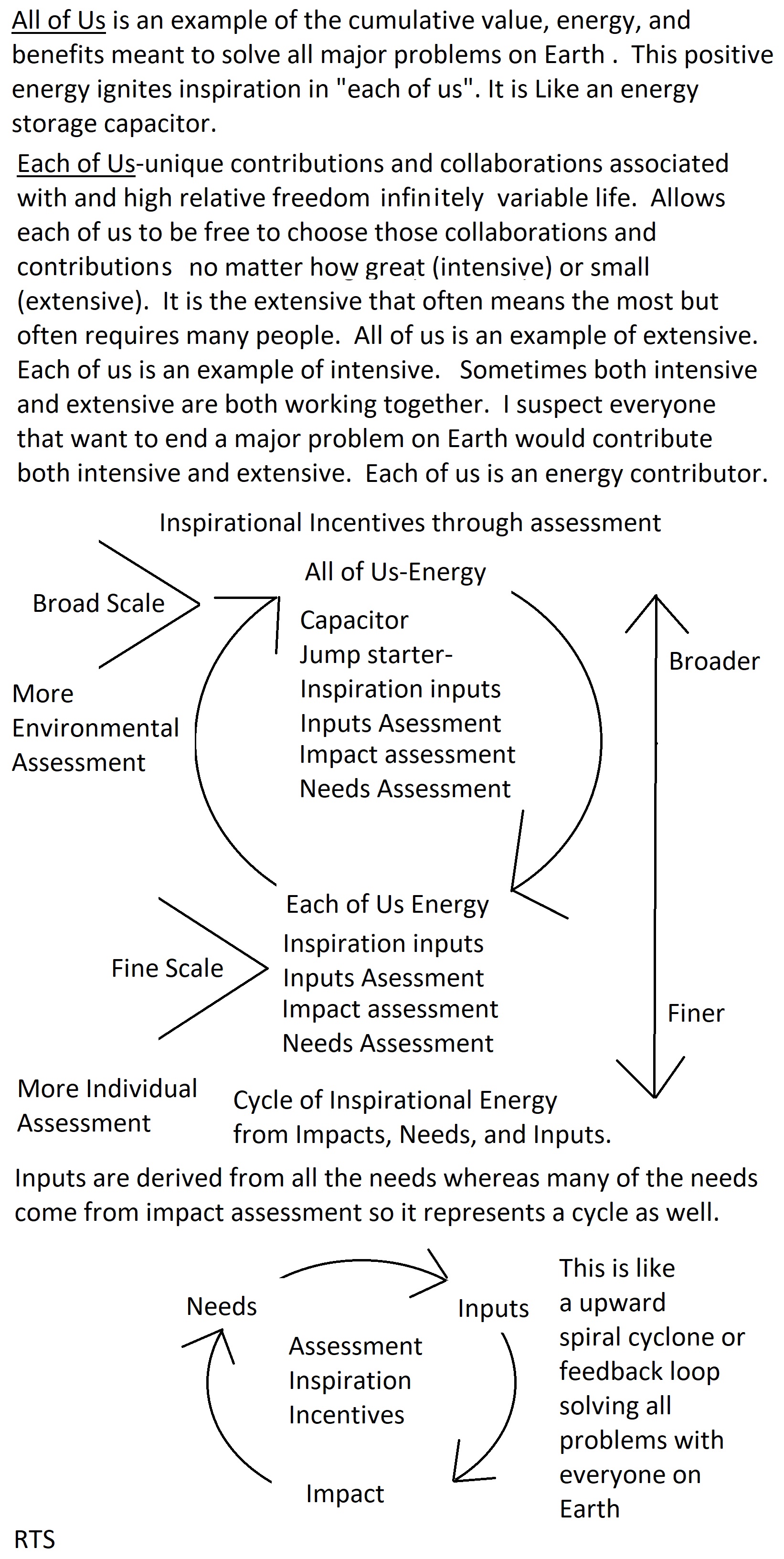 We need harmony and unity as a similarity condition for “all of us together”. That is one of the main reasons for the similarity foundation. We need loving caring sharing giving forgiving and genuine kindness striving to bring about conditions of comfort, joy, love, faith, hope; and stability striving for happiness. Once we have this unity and harmony, we will have conditions for the unique diversity pyramid which is important for adaptive striving towards the desired future conditions. Without a doubt, everyone that has been impacted by a positive feedback loop is noticed. With the we-me Unidiversity research explorer cycle, people have a chance to tell their story to a broader-based responsible Unidiversity in a confidential and anonymous way. Another way is about having a help project where you can identify people in an anonymous confidential way so they can get the help they need. It is like having an anonymous box where you explain where when and why someone may need help. With the we-me integrated device, it will be very easy to help everyone everything everywhere on earth but it does so by identifying points and areas at a broader assessment level so more research explorers can be sent into the area to figure it out more. But it will take all of us. That is why we will have an Unidiversity research explorer cycle.